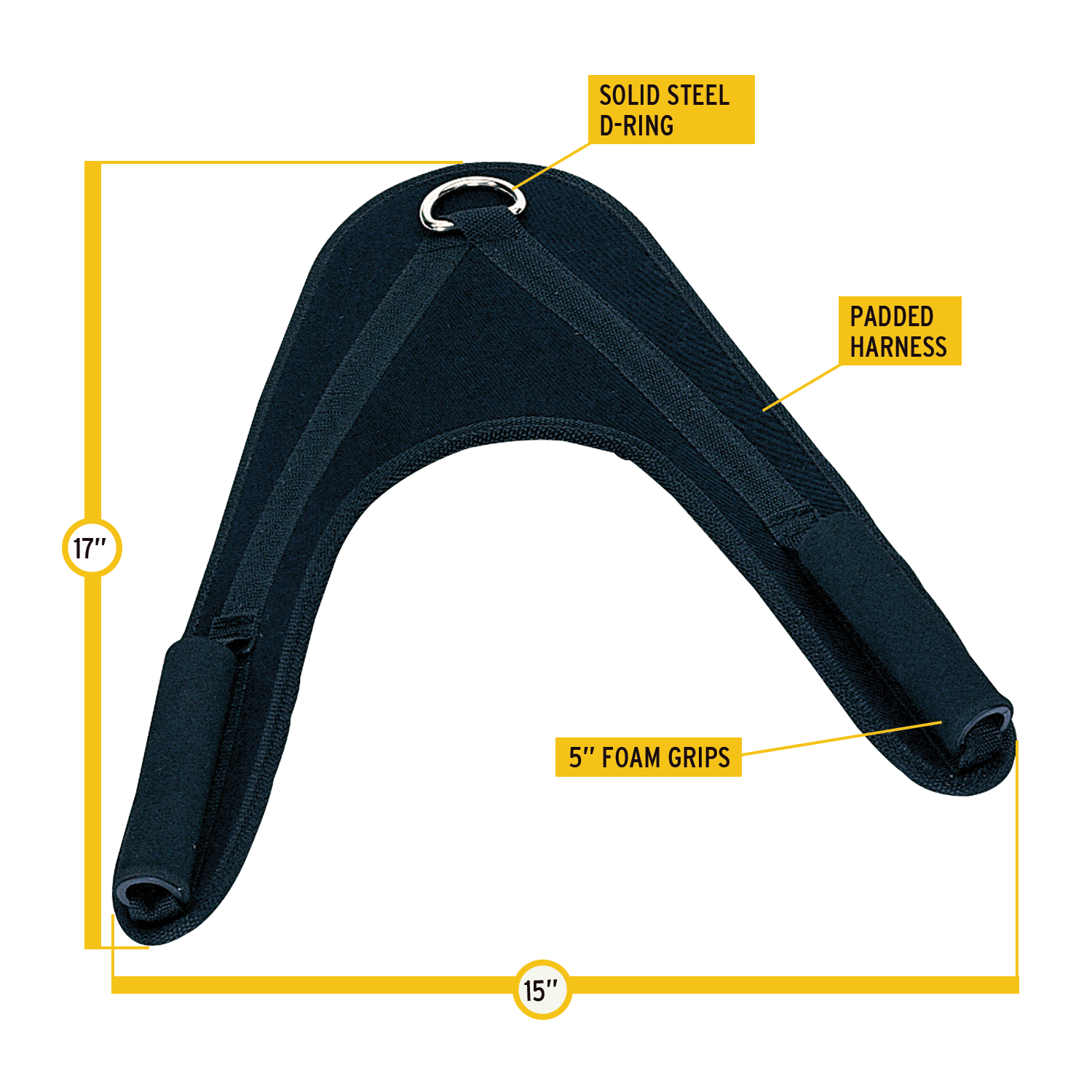 The Body-Solid AB Crunch Harness ACH18 is a compact, lightweight training accessory designed for focused abdominal crunch movements. It features a solid steel D-ring that allows for quick attachment to cable machines, making it easy to integrate into existing strength setups. Measuring 17” x 15” and weighing just 0.4 lbs, it’s simple to handle, store, and use without adding unnecessary bulk.