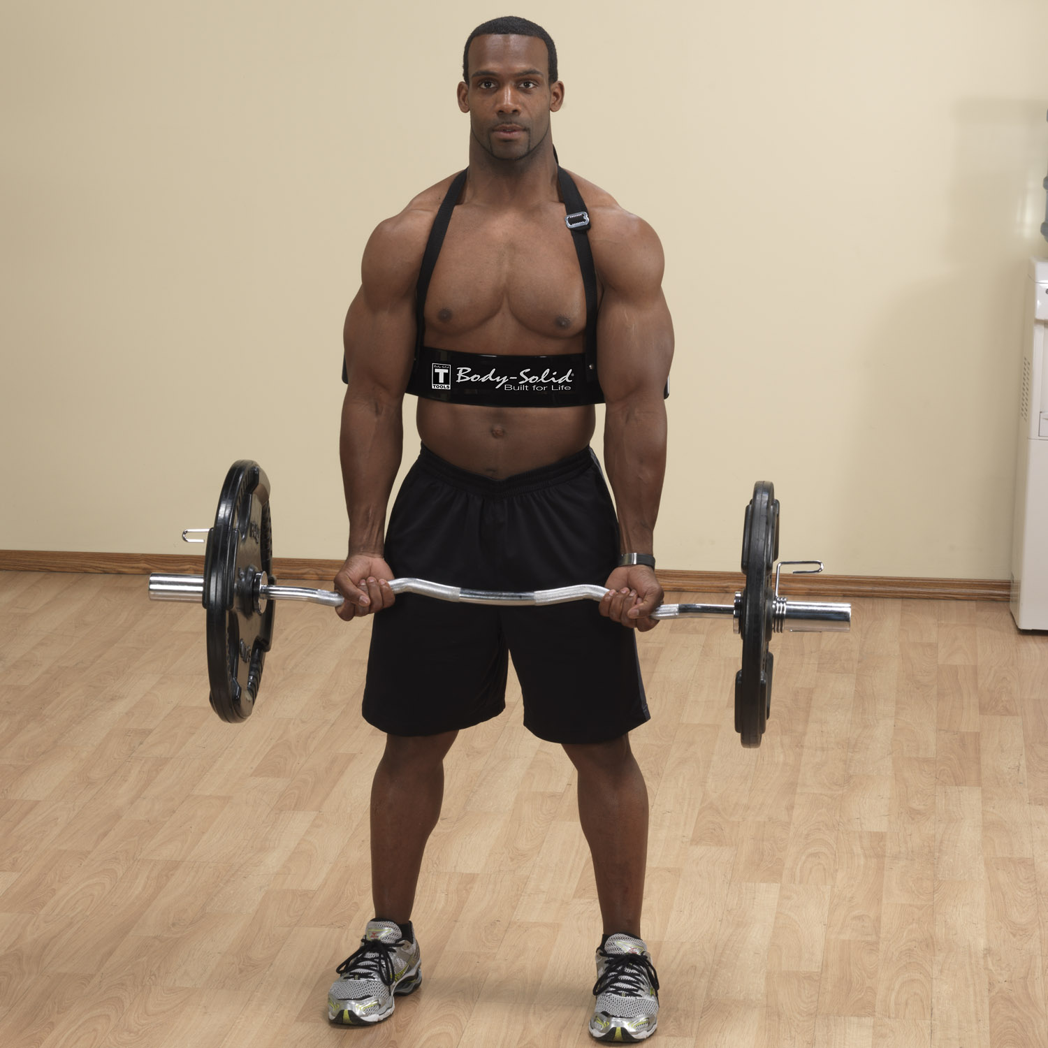 Proper Curl Positioning: Locks the back and elbows in place for safer, more efficient training
