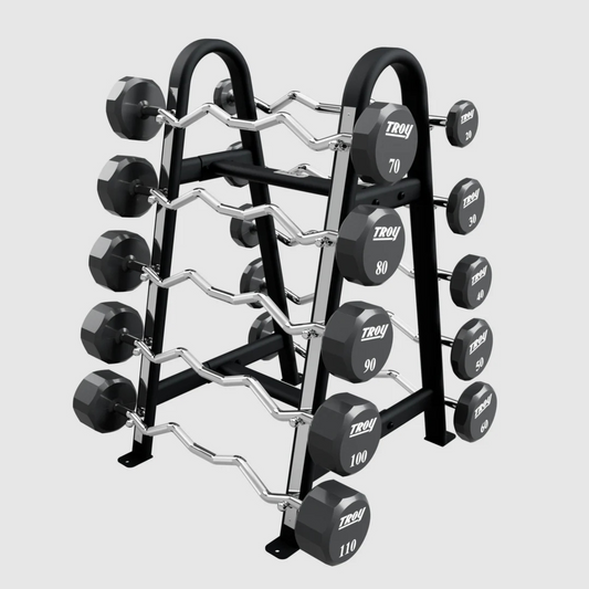 Troy 12-Sided Rubber EZ Barbell Set with Rack 20–110 lbs