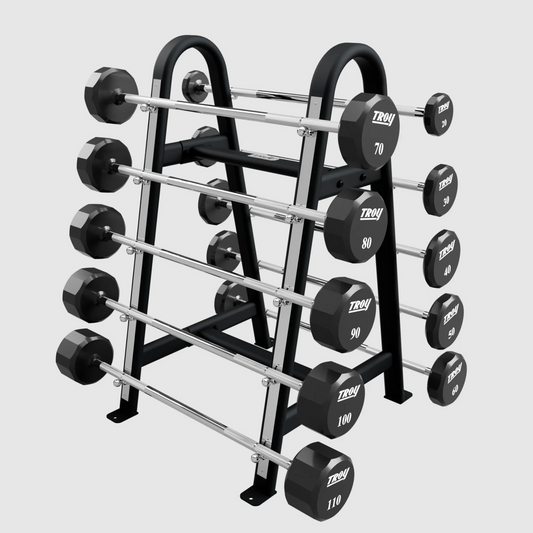 Troy 12-Sided Urethane Straight Barbell Set with Rack 20–110 lbs