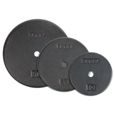 The 1” Standard Flat Pro Cast Iron Plate, the “pancake plate”, is a simple plate that offers a variety of sizes. These plates can be used with York's 1” dumbbell handles to make an adjustable set of dumbbells in order to help conserve space or with any equipment that utilizes standard plates. The Standard Flat Pro Cast Iron Plates are composed of durable cast iron which helps these plates last a lifetime.