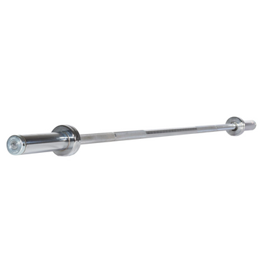 The York Barbell 6' International Chrome Olympic Bar utilizes a signature design that replaces the outdated bolt-and-sleeve assembly. It is manufactured from North American steel and has a minimum tensile strength of 100,000 PSI.