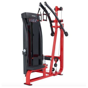 The Steelflex Lat Pulldown JGLM300 is designed to enhance back and biceps training with its dual rotating handles and bilateral movement arms. The machine features high and low grip positions, providing a full range of motion for optimal muscle engagement.