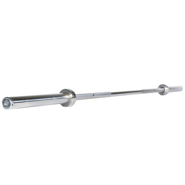 The York Barbell 7' International Chrome Olympic Bar has a signature design that replaces the outdated bolt-and-sleeve assembly. This bar has been manufactured from North American made steel, with a minimum of tensile strength of 170,000 PSI. It also boasts a 1,500 lb weight capacity so you can train heavy with confidence.