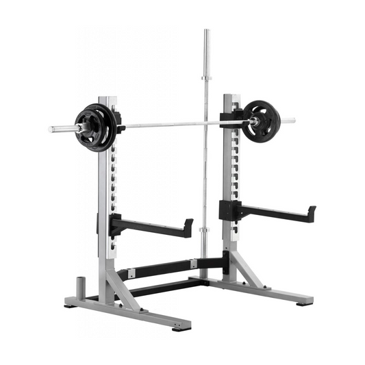 Squat racks are compact and versatile strength training stations designed to support barbell exercises like squats, lunges, and overhead presses. They typically feature two sturdy uprights with adjustable barbell holders for different user heights, making them ideal for home gyms and smaller workout spaces. Unlike full power racks, squat racks offer an open design for greater flexibility while still providing stability for heavy lifting. Many models also include spotter arms for added safety, allowing lifters to train confidently without a spotter.