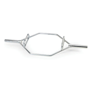The TAG Fitness Hex Combo Bar allows users to step inside the hexagonal shaped frame for more centered deadlifts, shrugs, and farmer carries. With a silver zinc finish and raised, knurled handles, it performs in both commercial facilities and home gyms.