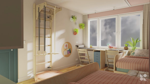 BenchK 111 + A204 Wooden Wall Bars for Kids Room