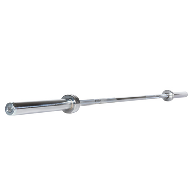 It features needle bearings to ensure smooth, consistent rotation of the sleeves. The sleeves are secured on the bar using a bar end nut and spring pin, and are machined to a precise 1.975" to accommodate 2" Olympic plates.