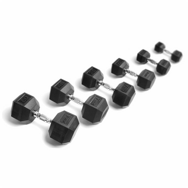 The Rubber Hex Dumbbells by York Barbell are a great addition to any workout space. They feature a strong construction and are available in a variety of set options for all fitness levels.