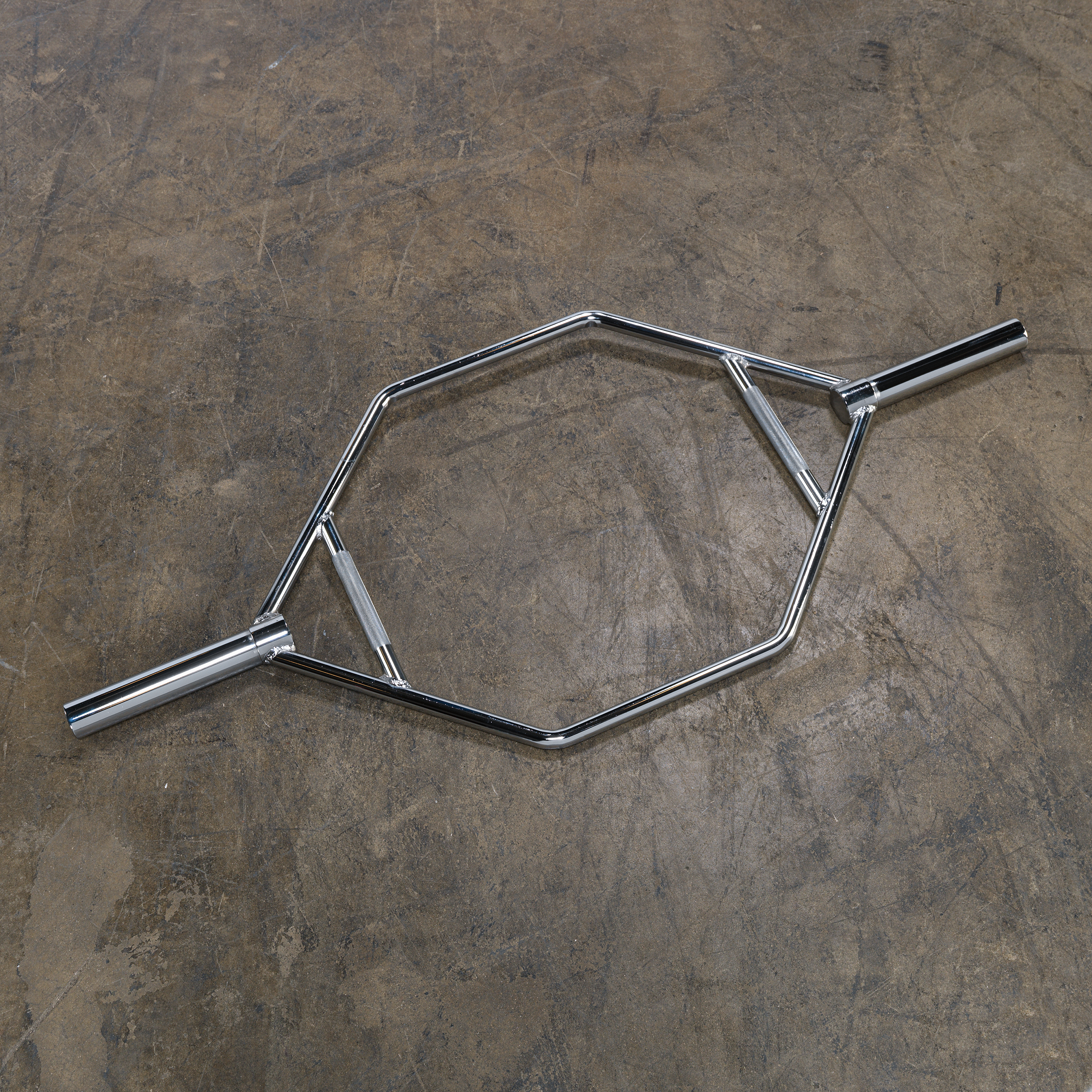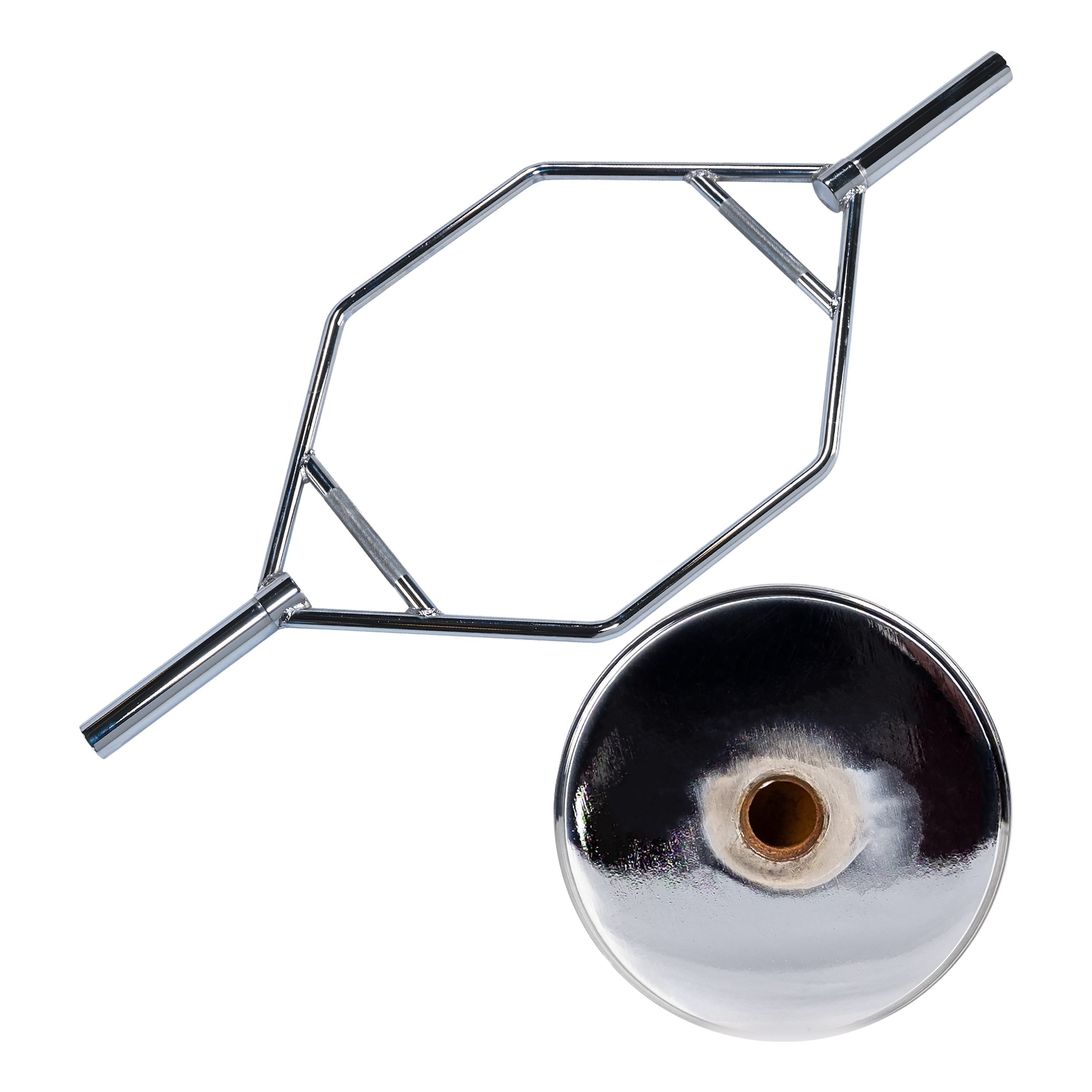 Designed to support heavy, controlled lifting, the OTB50 Olympic Trap Bar helps place the load in a more balanced position while reducing stress on the lower back. Its open design allows greater freedom of movement and deeper muscle engagement by eliminating contact with the upper thighs and torso. Well suited for shrugs, deadlifts, presses, squats, and lunges, this solid steel bar is built to enhance upper- and lower-body strength with a durable zinc-plated finish.