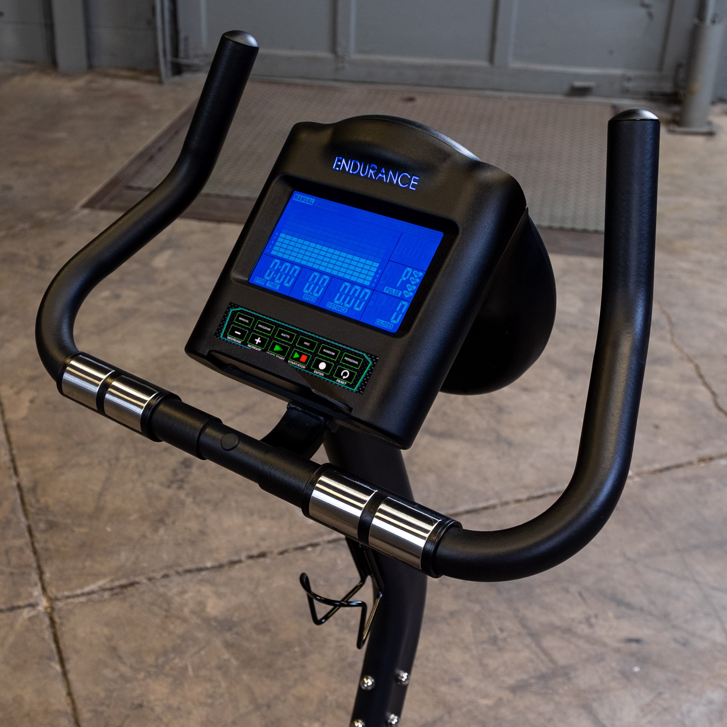 Integrated LED Display: Bright, easy-to-read screen shows speed, RPMs, heart rate, distance, time, watts, and calories
