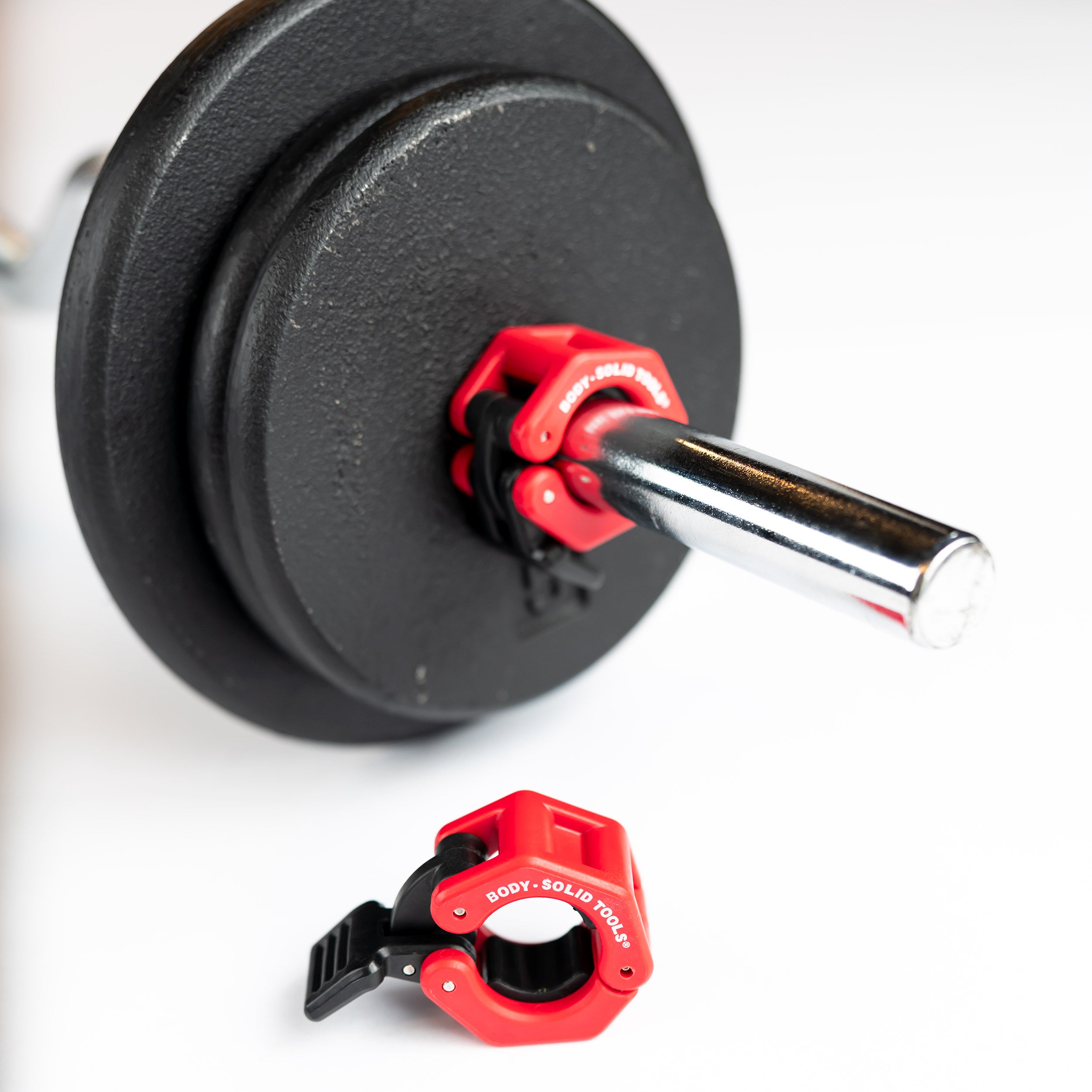 The Body-Solid 1” Standard Lock-Jaw Collar Pair BSTLJ1 is designed to securely hold weight plates in place on standard 1” (25 mm) barbells during training. Featuring a quick-locking cam latch and durable construction, these collars clamp firmly to the bar while helping protect the bar’s finish with rubber compression pads. Built for long-term reliability, they’re well suited for a wide range of training environments.