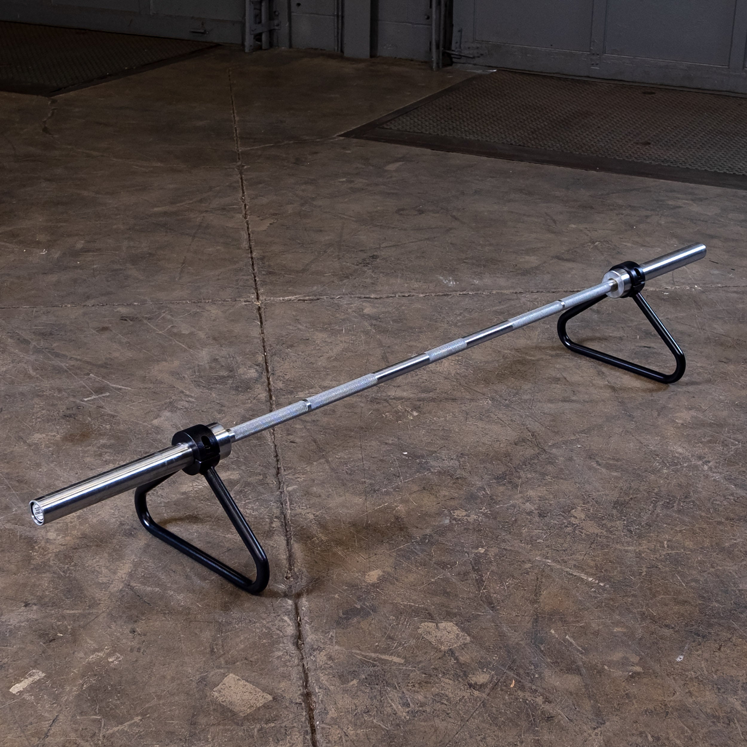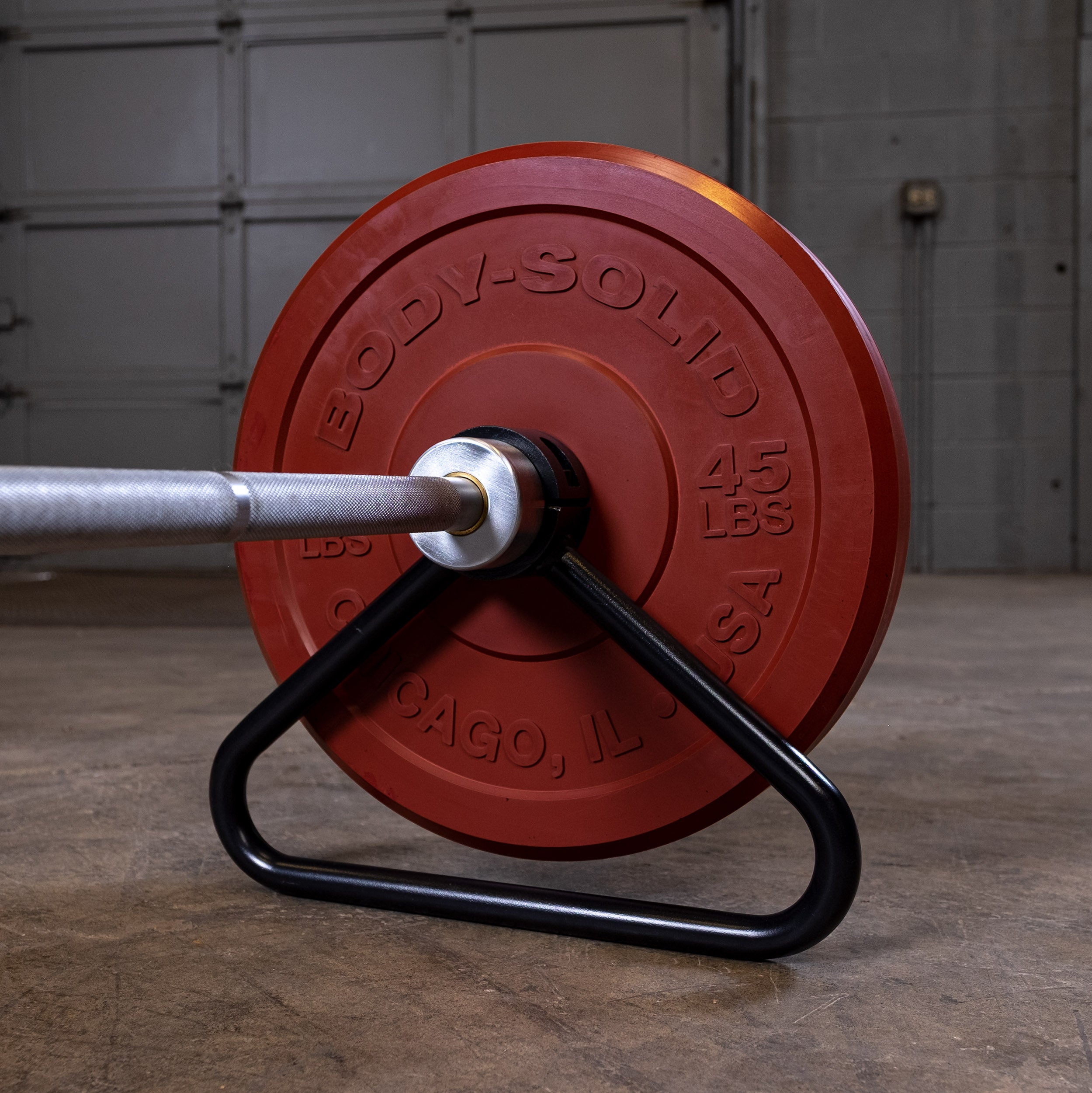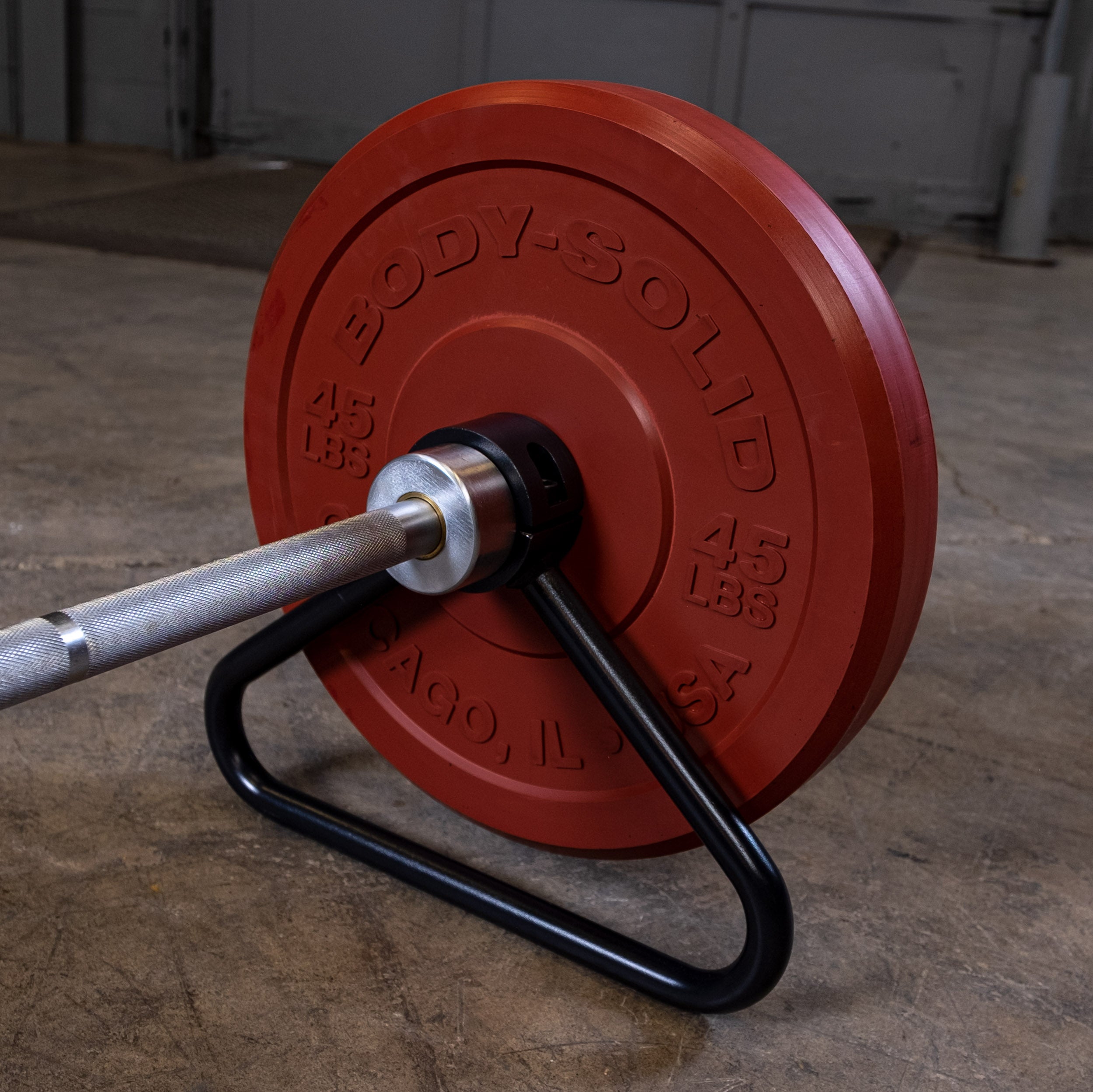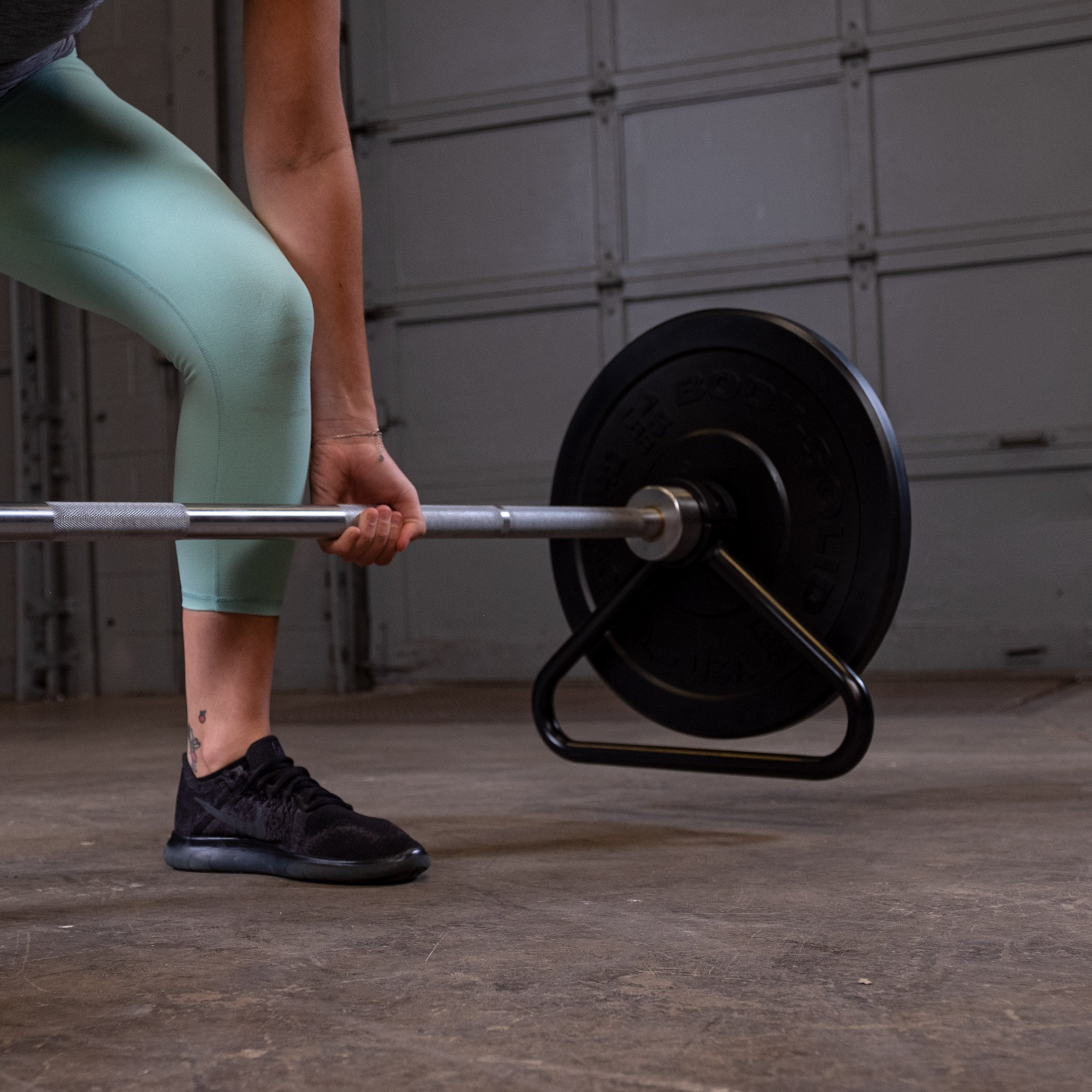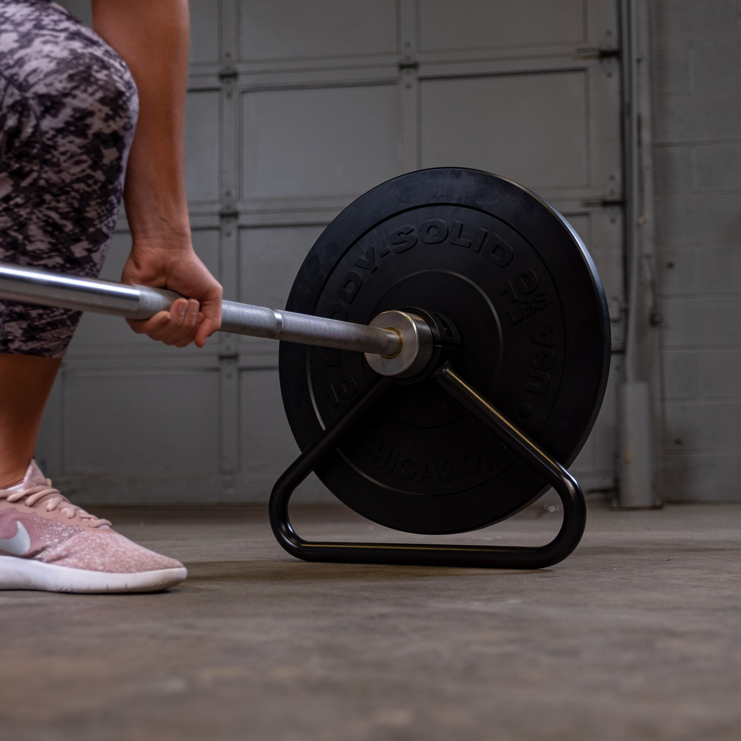 The Body-Solid Bar Stand BSTOBS is a practical Olympic bar attachment designed to simplify plate loading and unloading during deadlifts and other floor-starting lifts. By attaching directly to an Olympic bar, it functions as a built-in bar jack, raising the bar 10” off the ground to create sufficient plate-to-floor clearance. Built with a heavy-duty bolt-on design and solid steel construction, it’s especially well suited for dedicated deadlifting bars.
