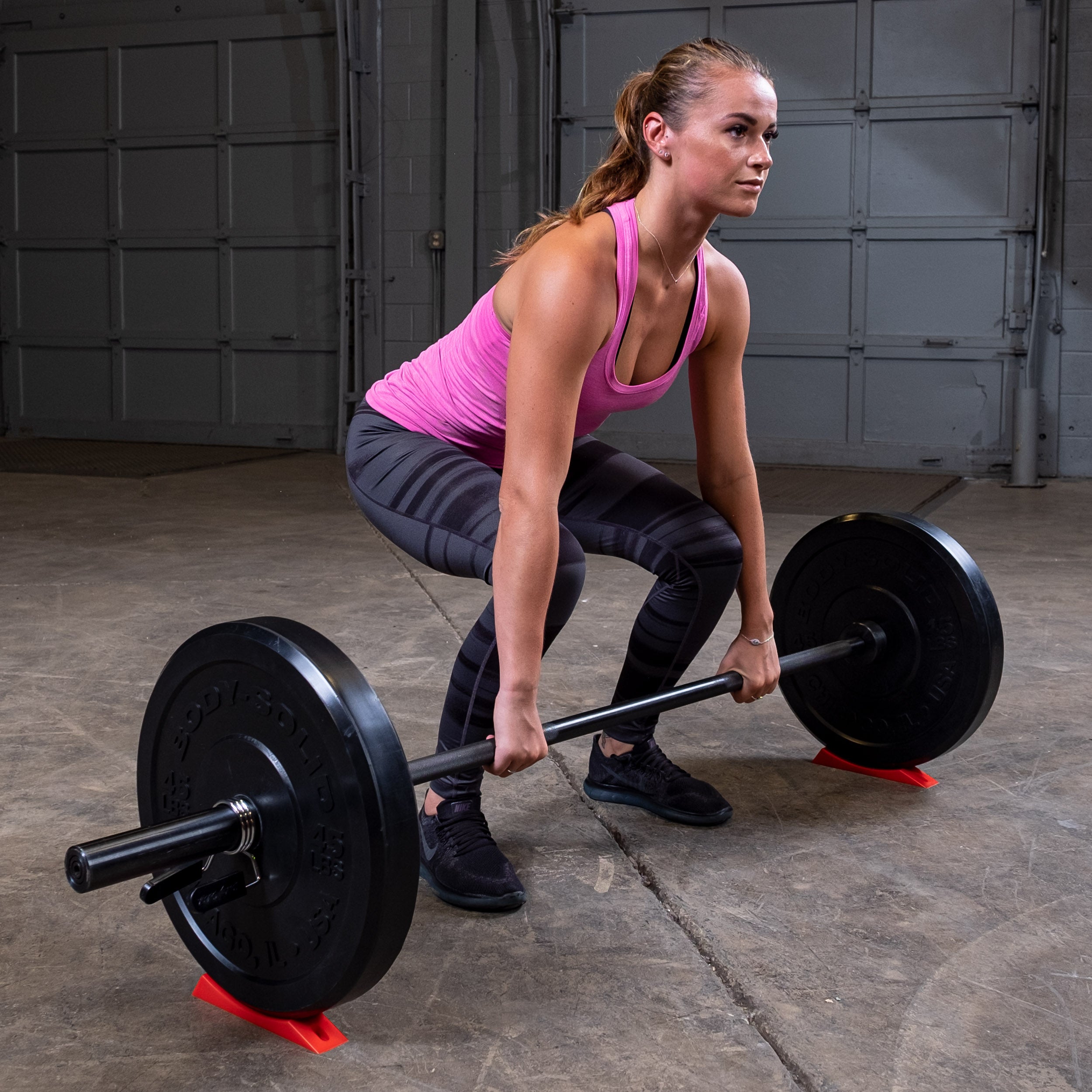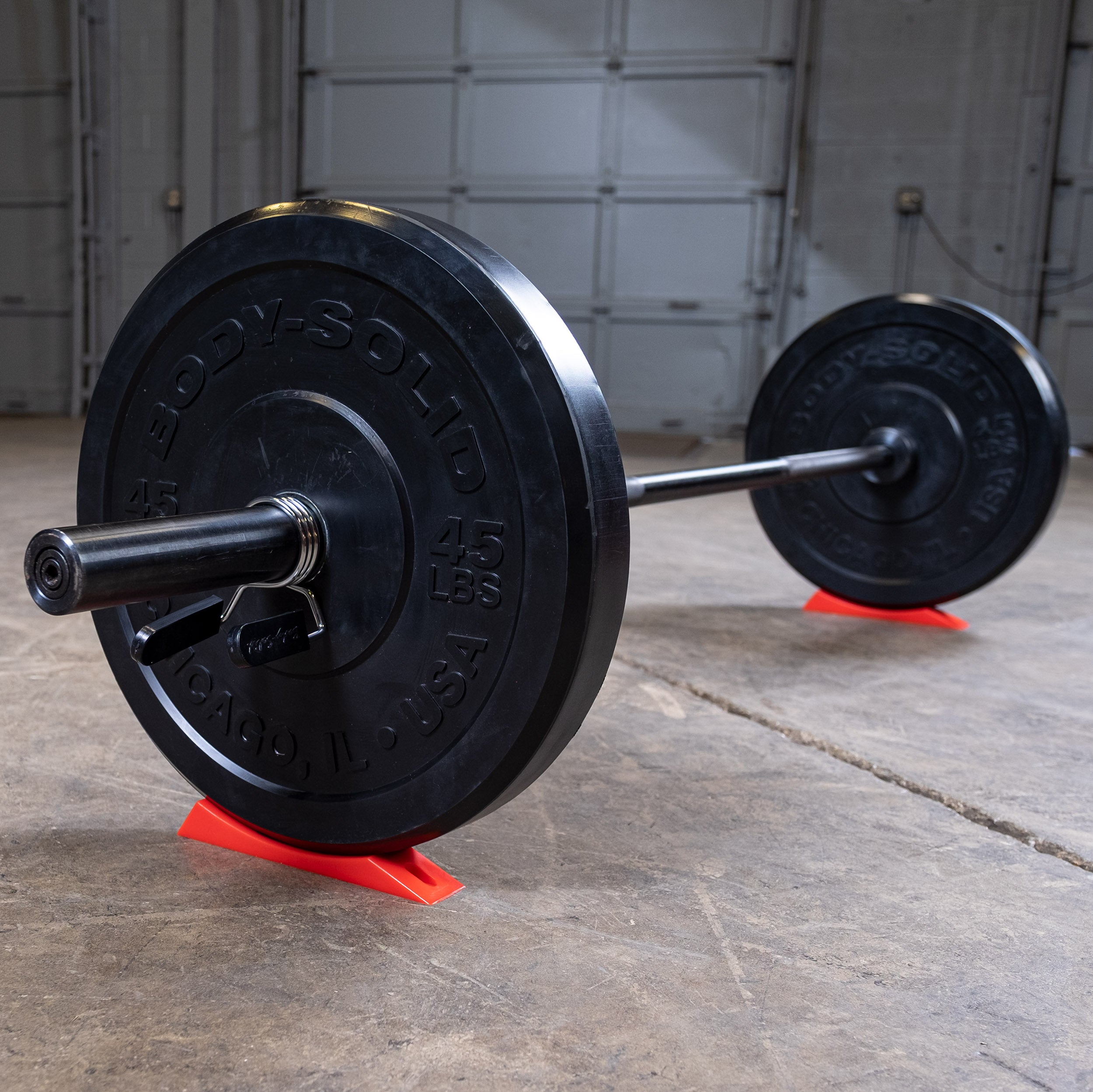 The Body-Solid Plate Wedge BSTOPW is a compact, portable alternative to traditional deadlift jacks, designed to make plate loading and unloading quick and simple. Made from durable silicone with a non-slip surface, it raises both the bar and plates ½” off the floor to ease setup for deadlifts and other floor-starting lifts. Its wedged shape helps prevent rolling or rocking, supporting safer and more controlled plate changes.