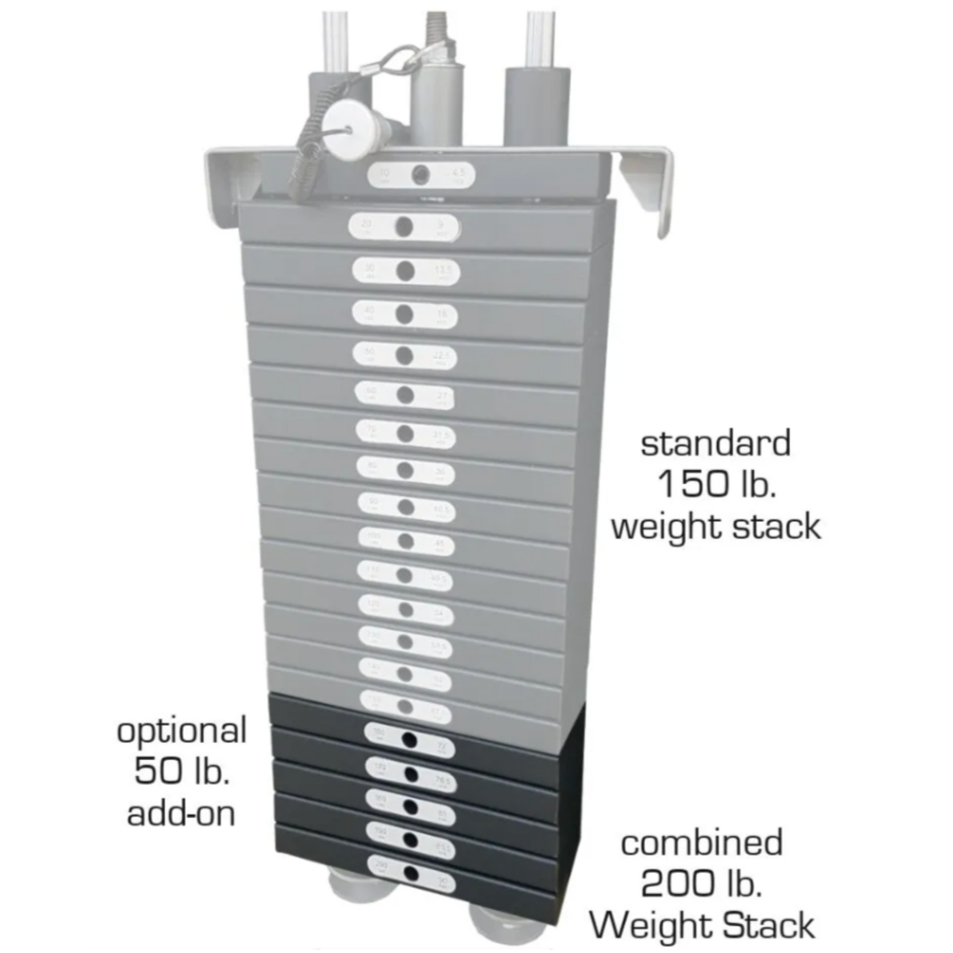 Optional Weight Stack Ad-On: +50 lbs = 200 lbs total