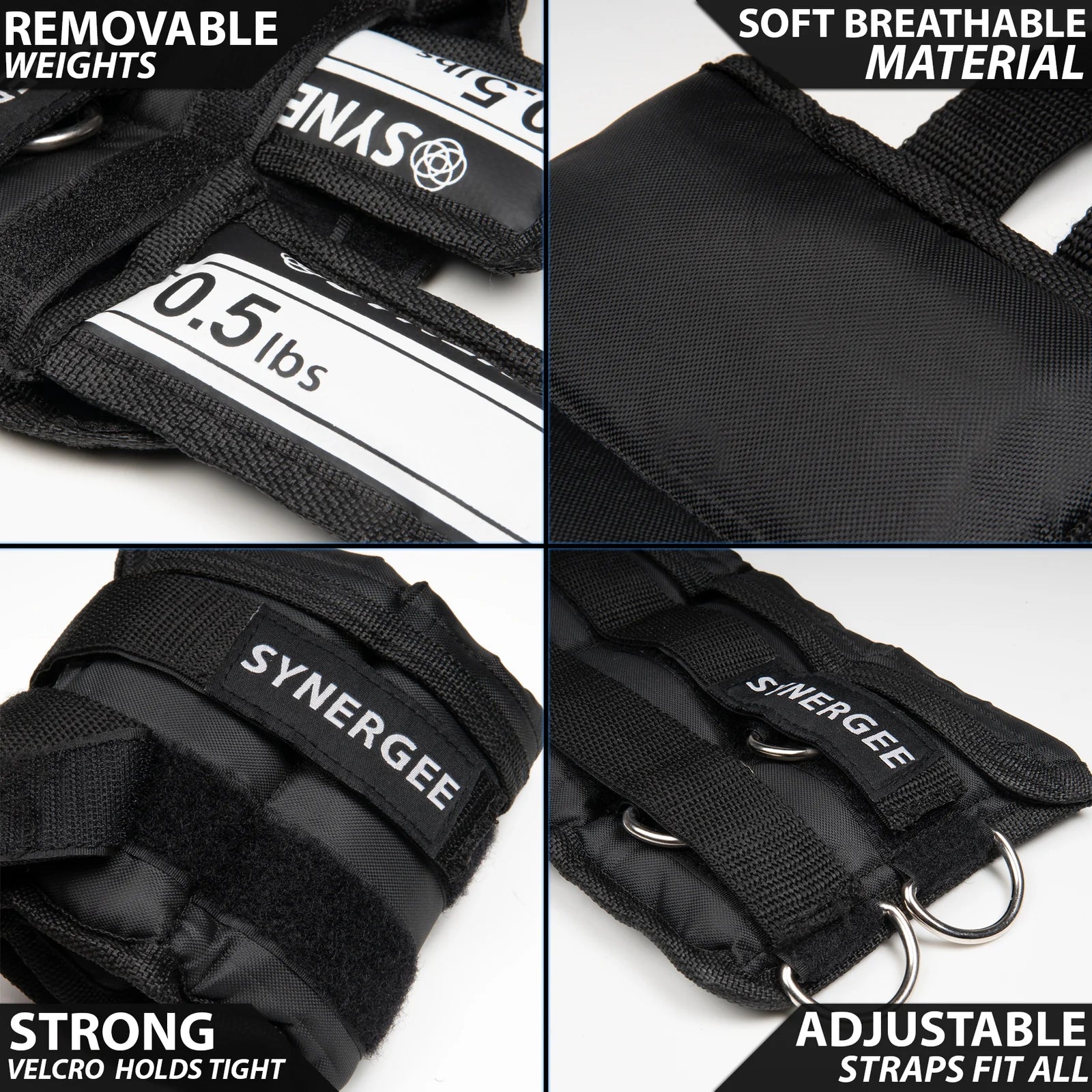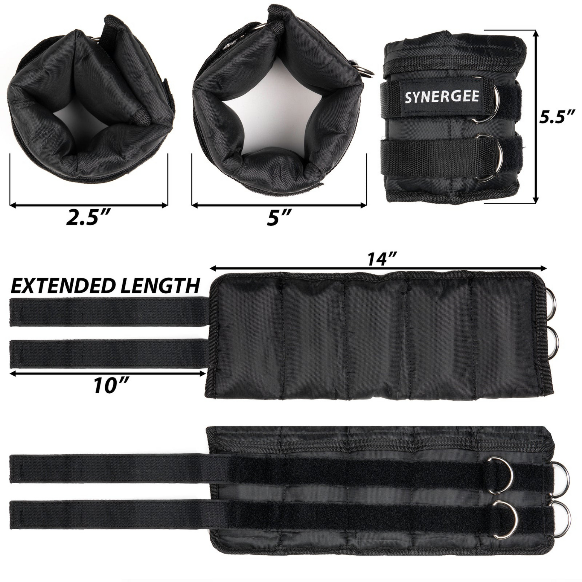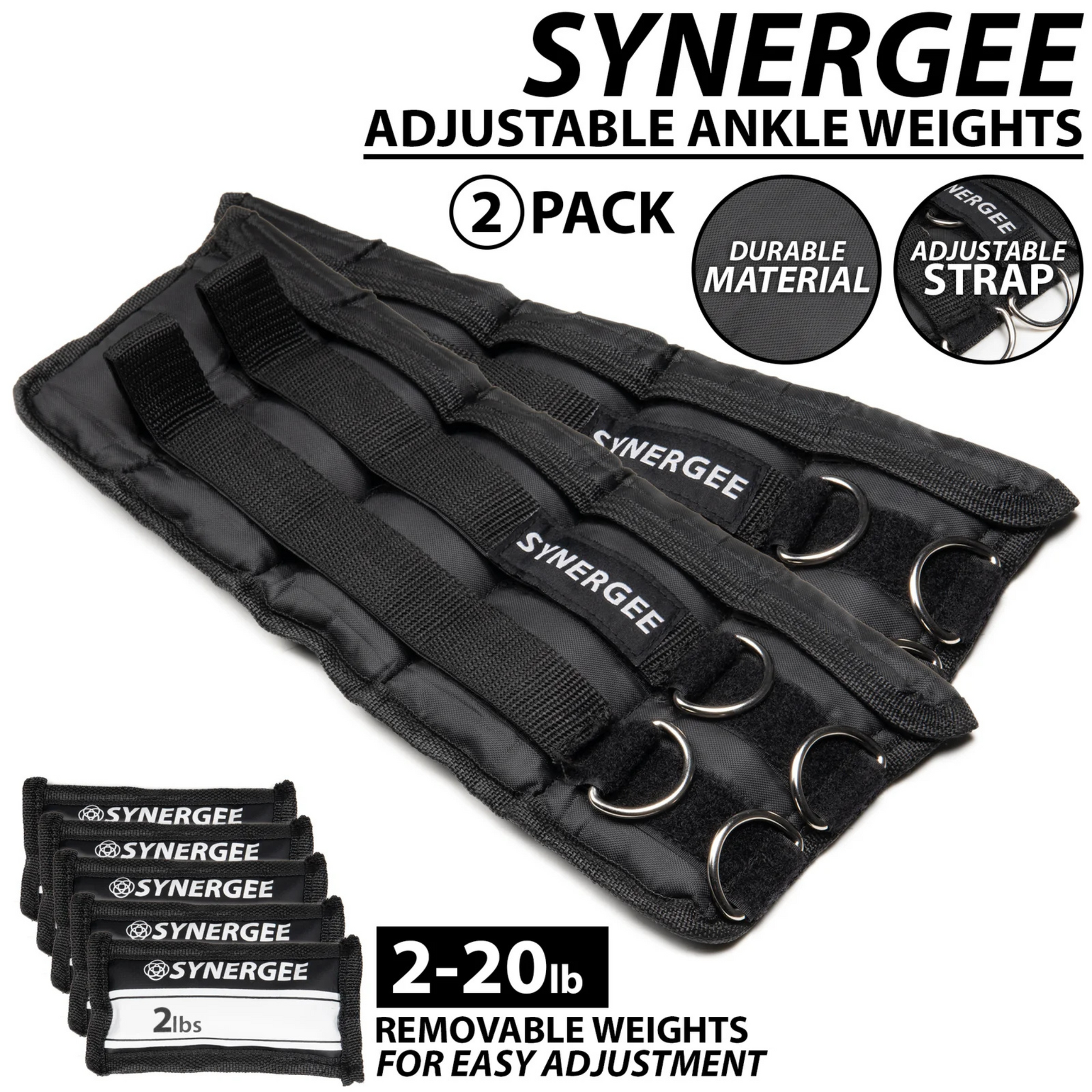 These adjustable ankle and wrist weights from Synergee are thoughtfully designed for your comfort and performance. Made from high-quality nylon, they feel soft against your skin. Dual D-rings provide a secure fit, keeping the weights in place during exercise.