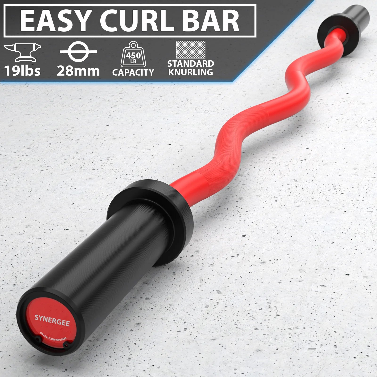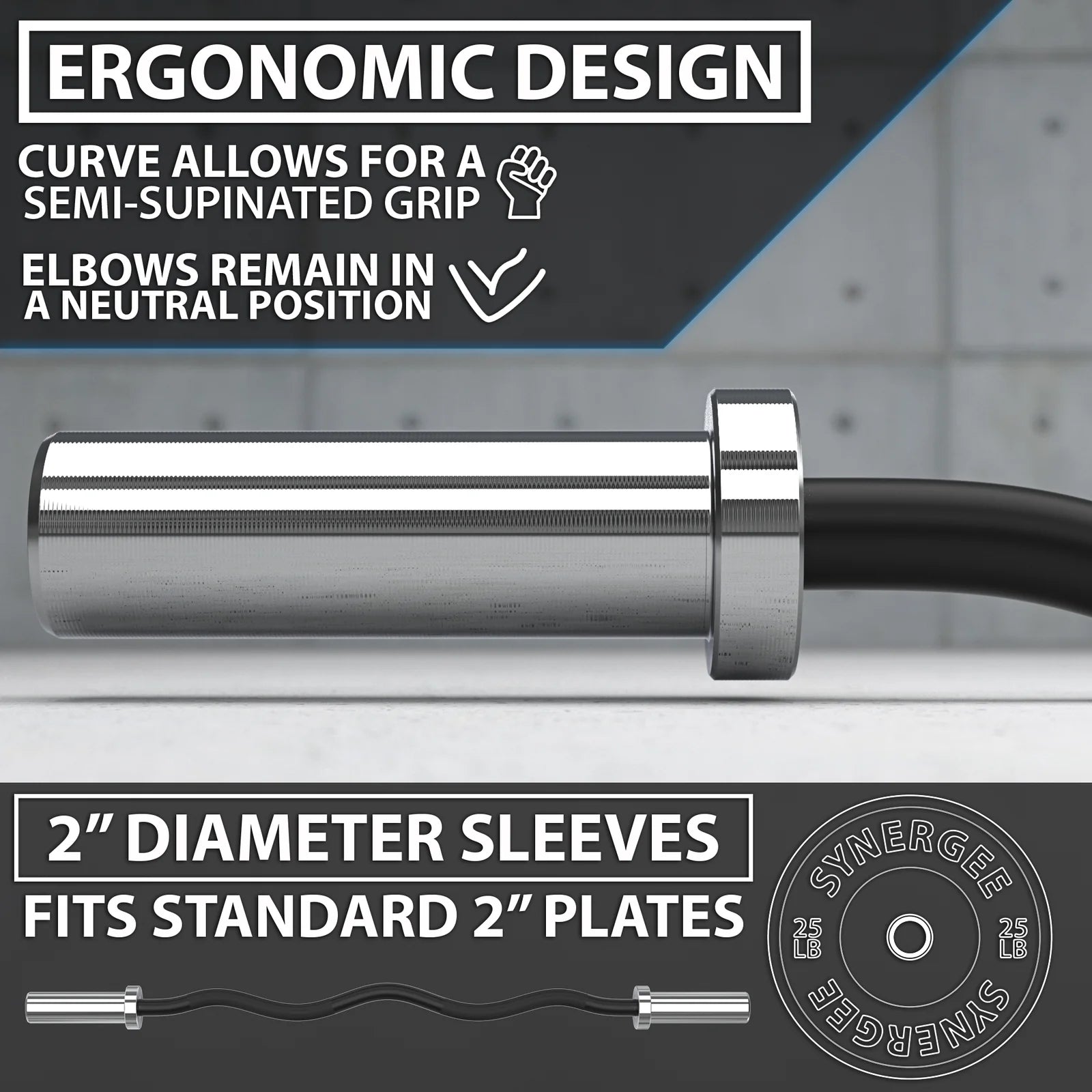 Synergee's EZ Curl Bars are made with high-quality steel. Each bar is built to withstand tough training sessions and supports a maximum load of 450 lbs. The EZ Curl Bar is designed to challenge your limits and hold heavy weights for curls, rows, extensions, Zercher squats, and more.