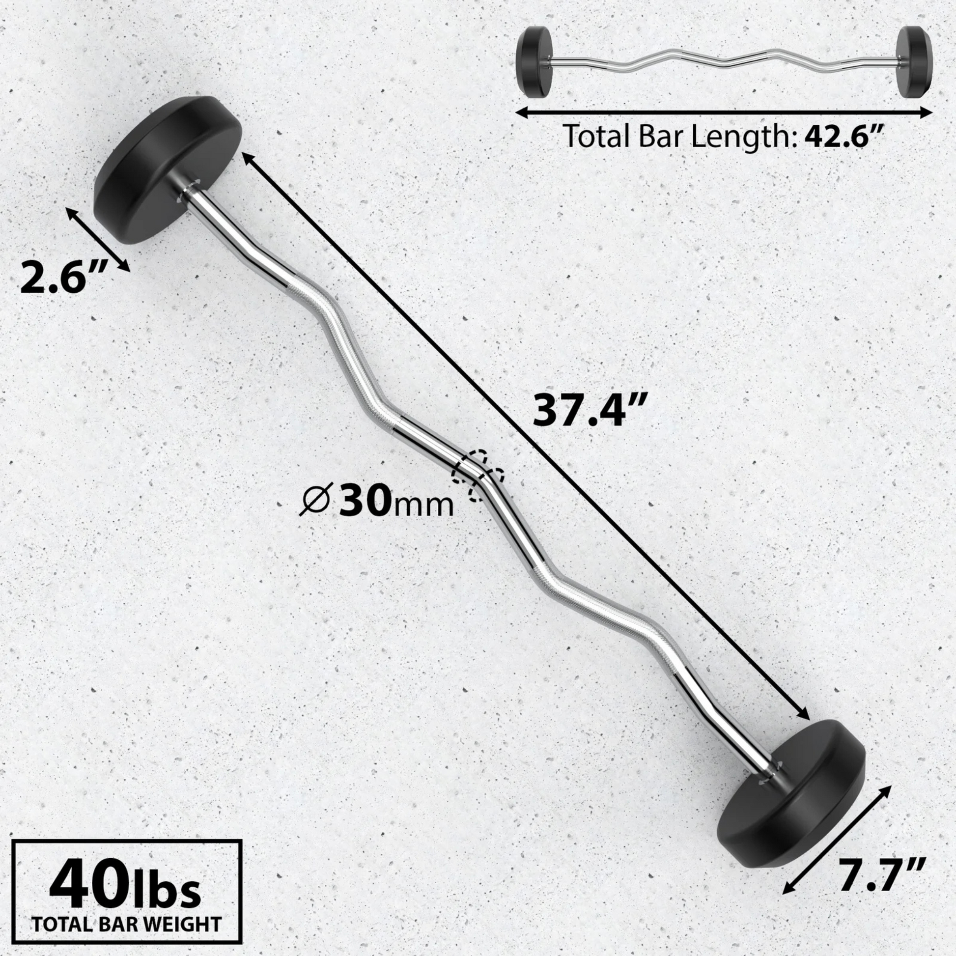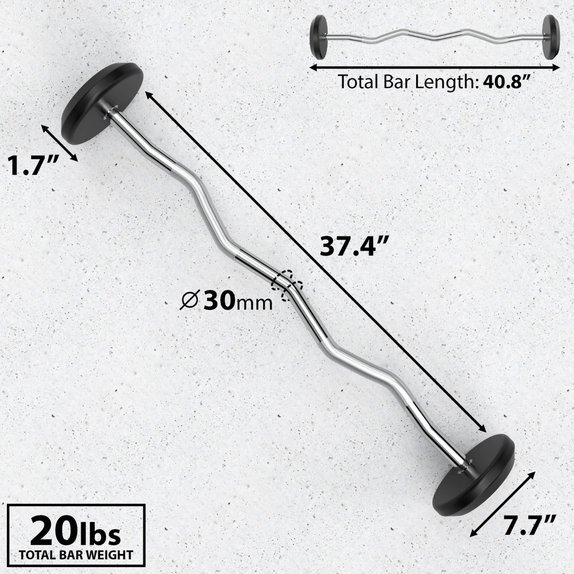 Each bar has a 1.25″ diameter with a standard knurl, providing a secure grip while giving your forearms an extra burn during curls, tricep extensions, and rows.