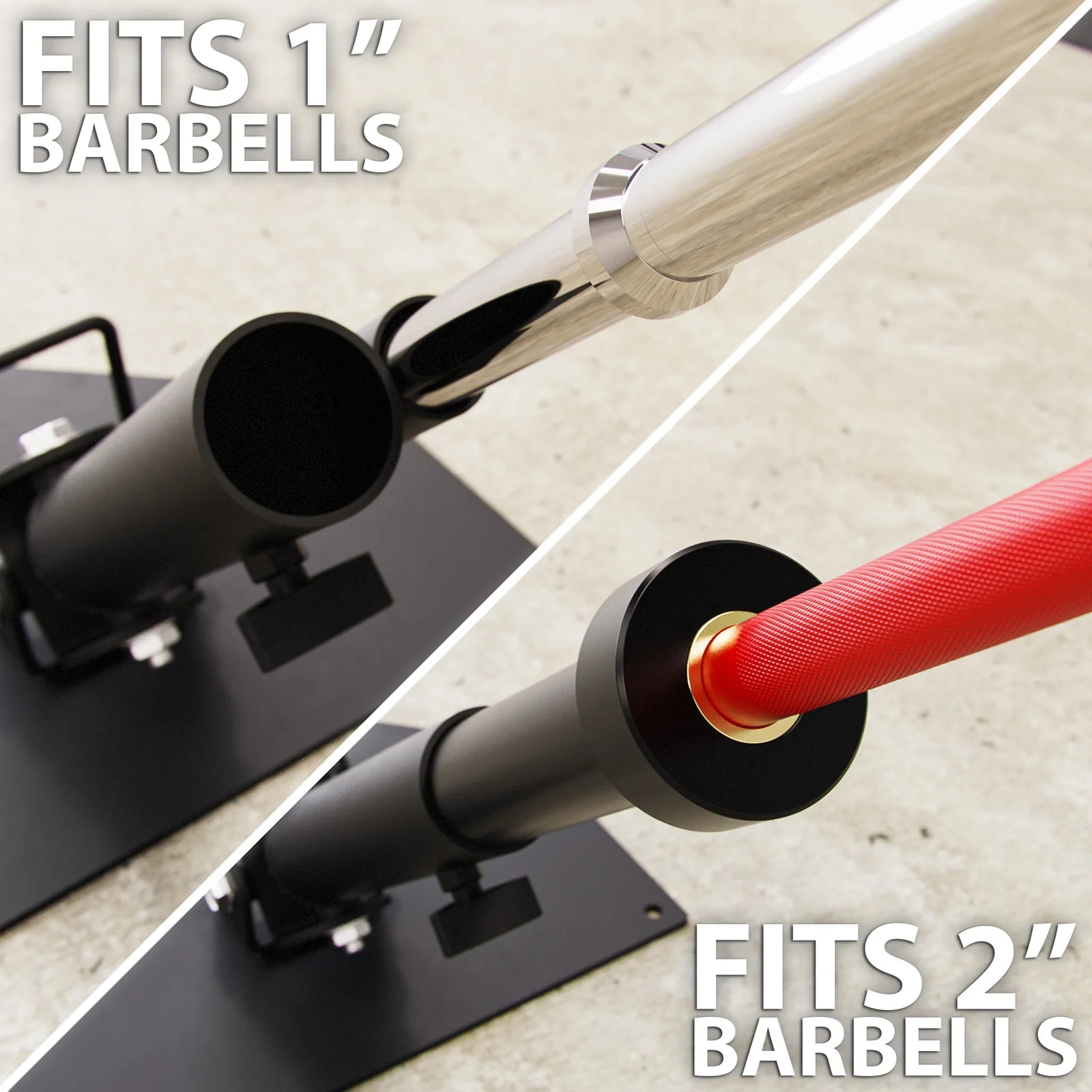 Dual Barbell Compatibility: Includes two sleeves: 10" for Olympic barbells and 5.7" for standard 1" barbells.