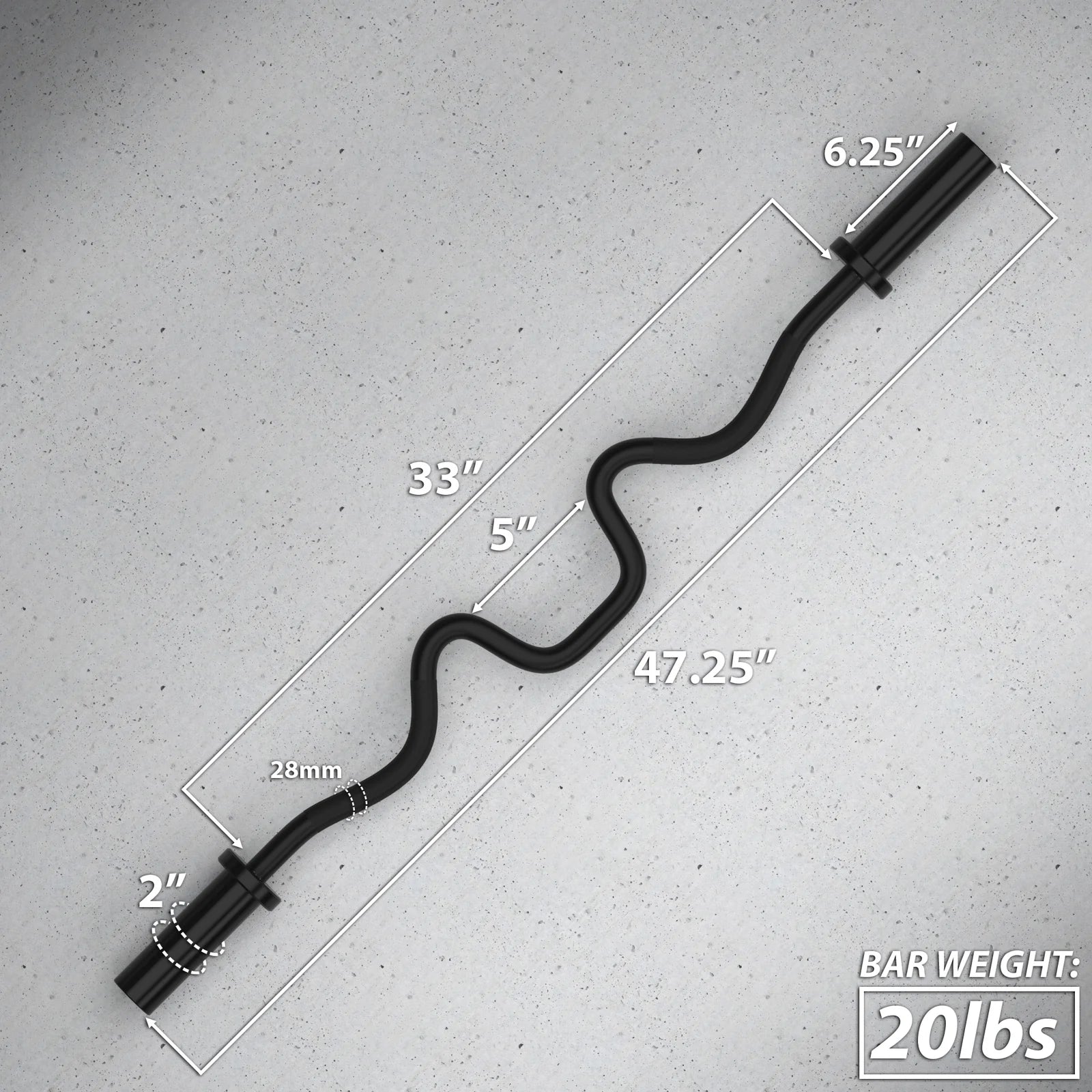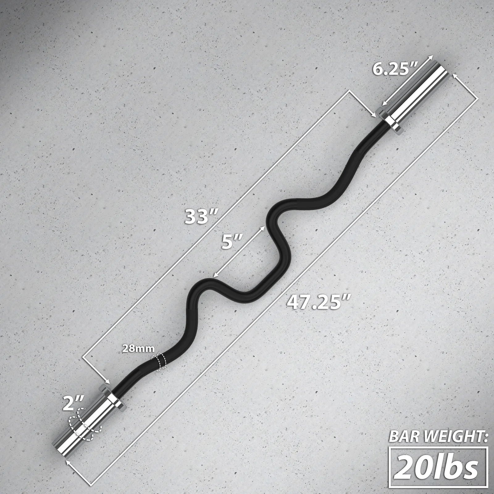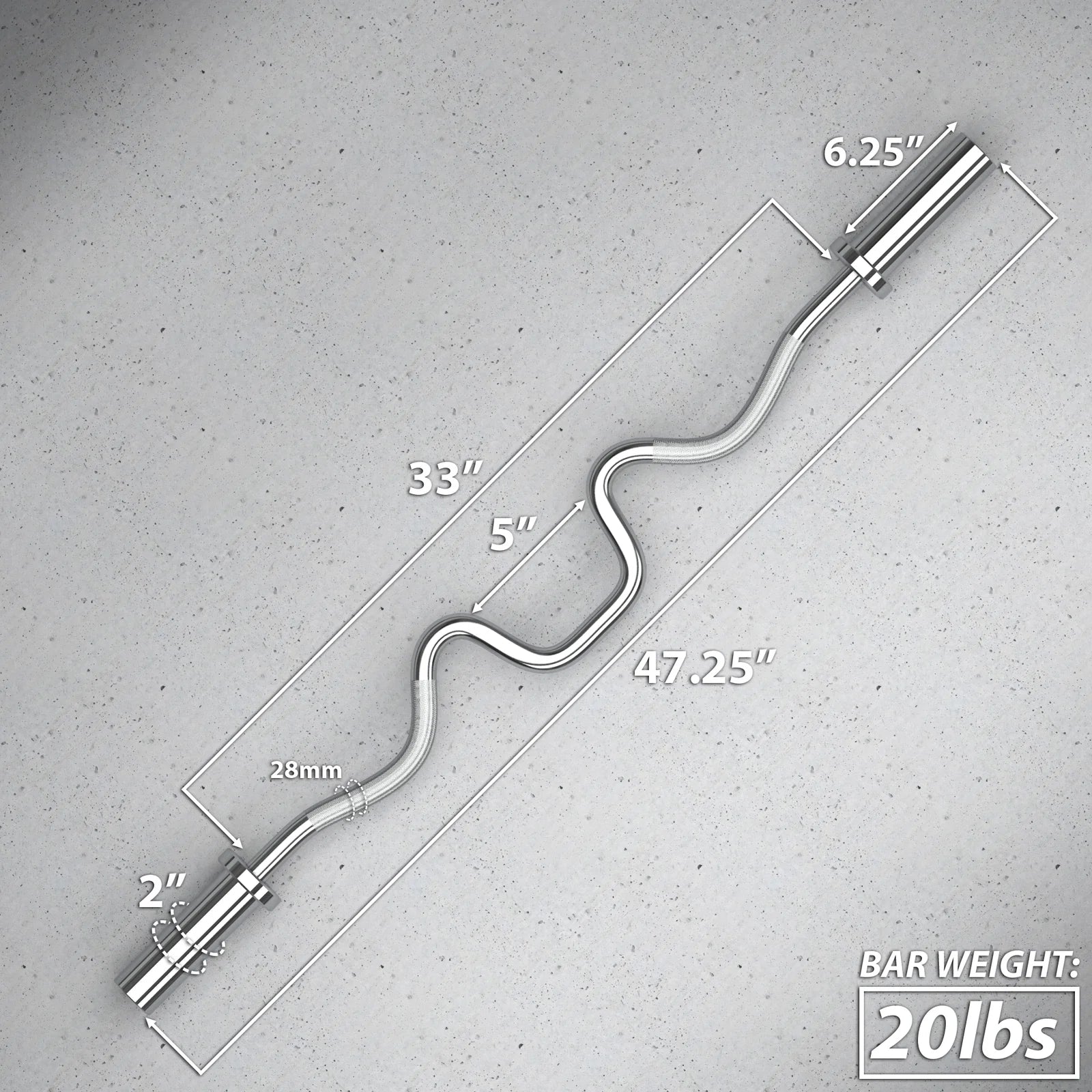 There are four options to choose from for your steel Super Curl Bar. Each one is 20 lbs, 47.2" long, 28 mm in diameter, and has 6.25" of loadable sleeve length on either side.