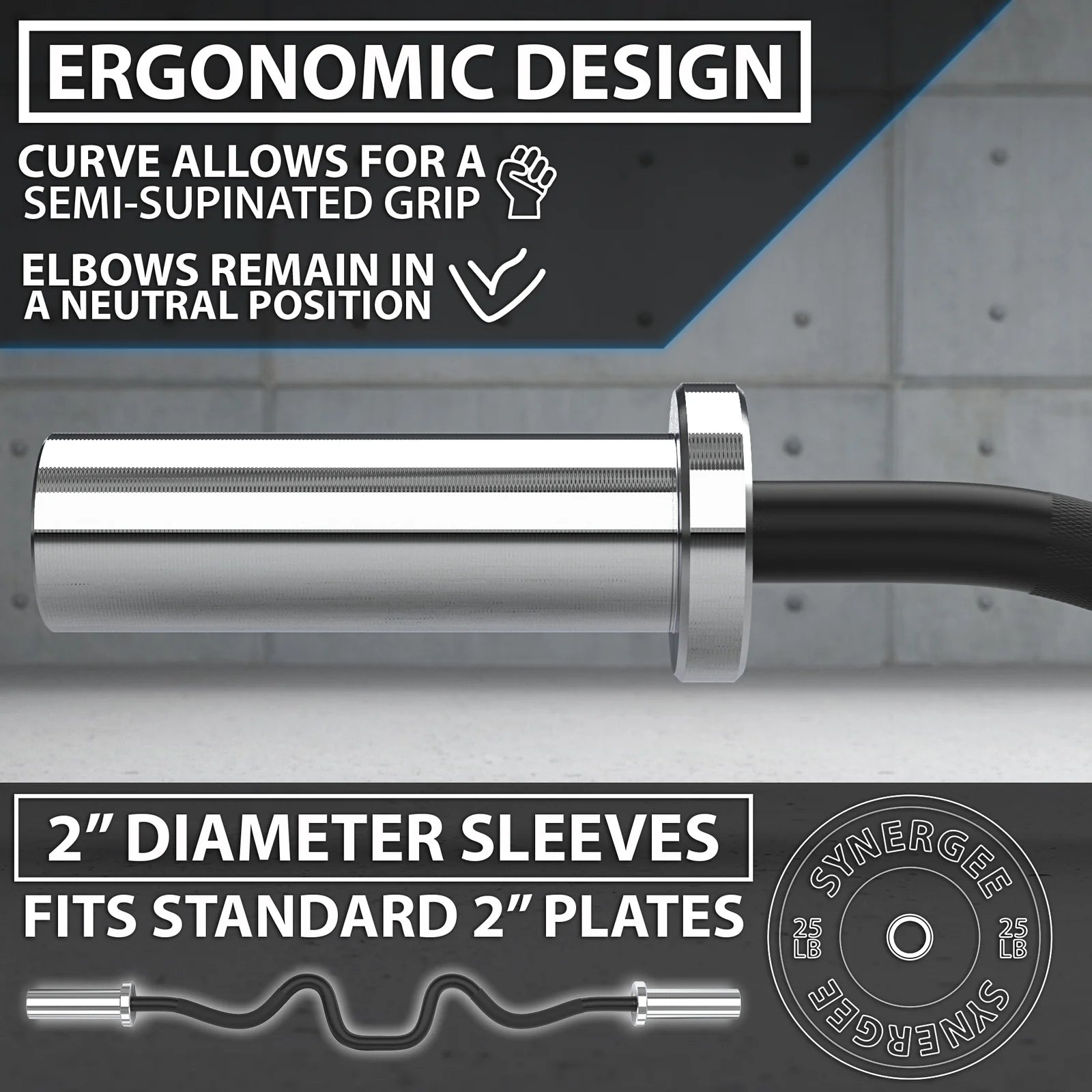 Synergee's Super Curl Bars are made with high-quality steel. Each bar is engineered to handle your toughest workouts and supports a maximum weight capacity of 400 lbs. The Super Curl Bar is designed to challenge your limits and hold heavy weights for curls, rows, extensions, and more.