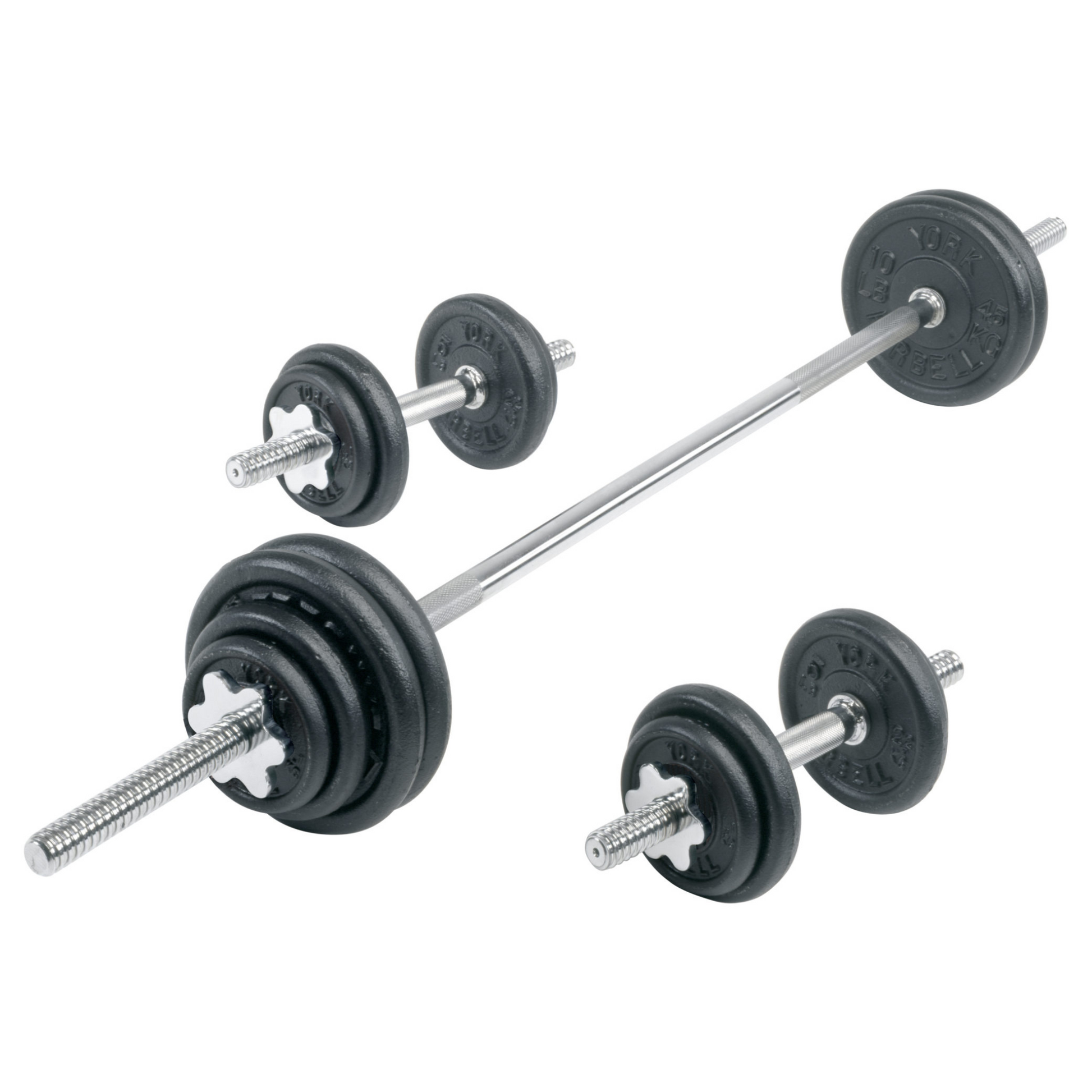 York Barbell 110 lb Contour Cast Iron Spinlock Dumbbell/Barbell Set