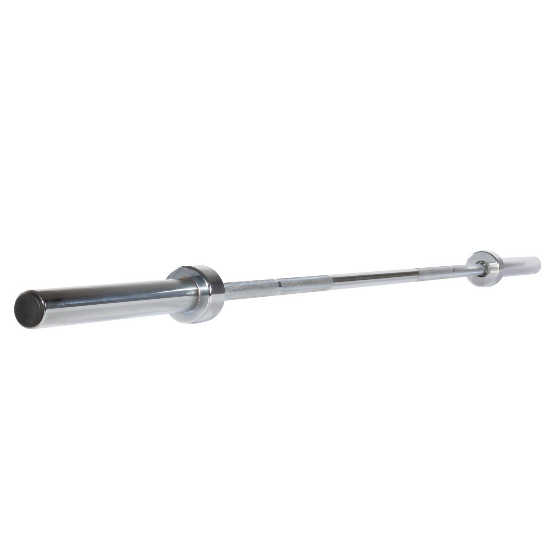 This bar is suitable for use in home and garage gyms, school weight rooms, or fitness studios. It boasts a chrome finish with a “C” clip sleeve assembly. With a 1,000 lb test, this bar handles your everyday workout.