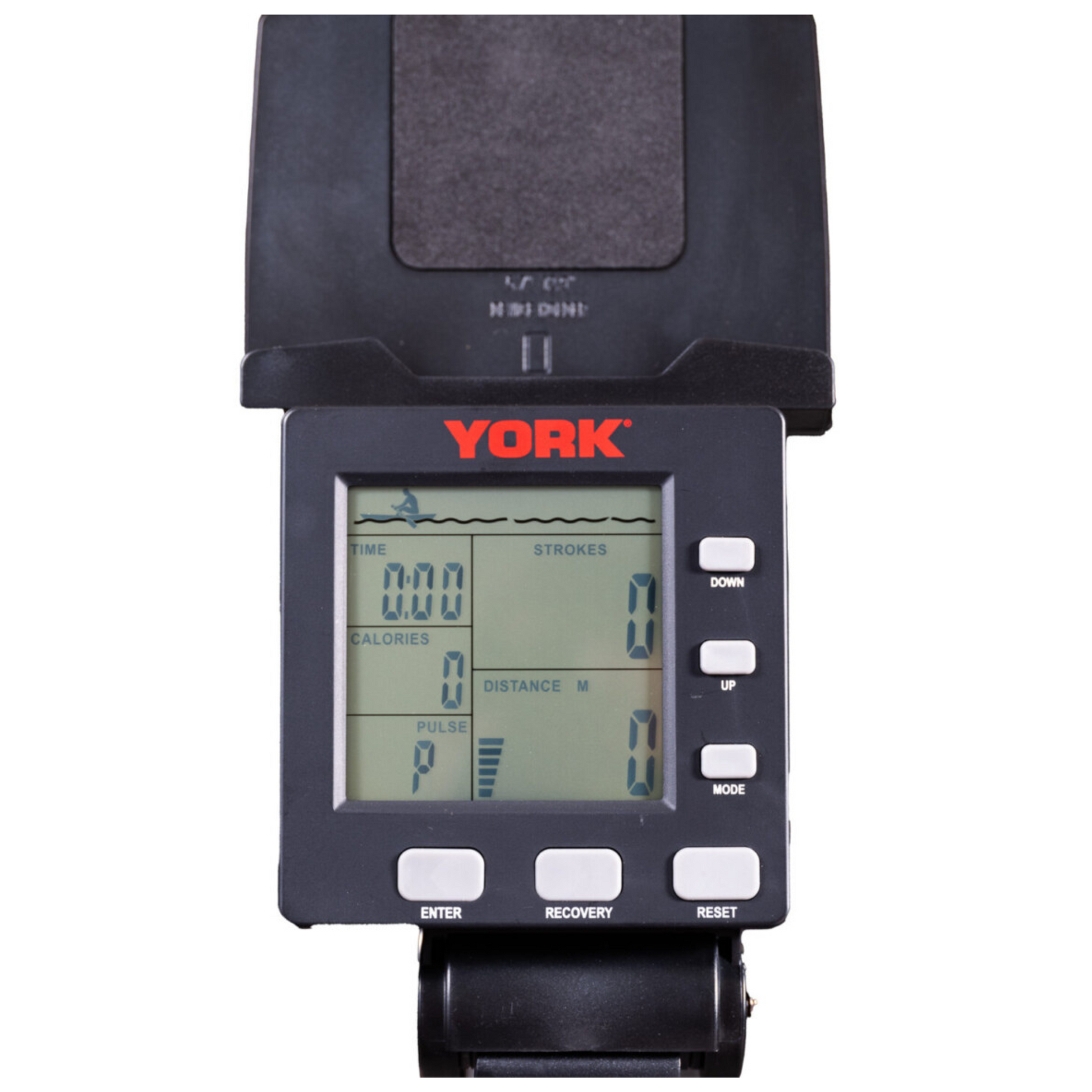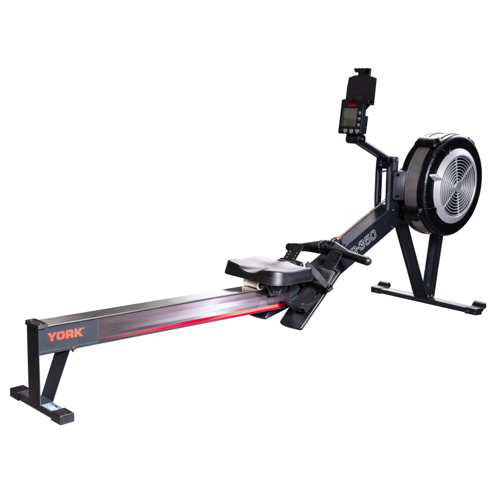 The York Barbell R350 Rower is a strong and lightweight piece of equipment that utilizes a stainless steel track with an aluminum beam for smooth movements. Ideal for both home and commercial fitness centers, it features a nickel plated chain drive, variable resistance, an ergonomic seat, and easy storage capability.